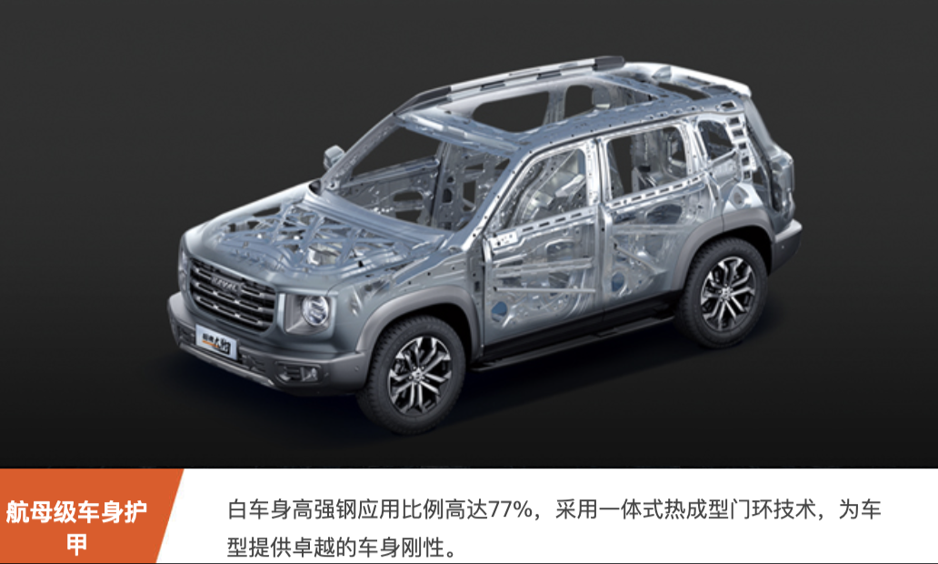 而在更为重要的车辆安全中,哈弗大狗通过断面设计、材料应用,其高强度钢应用比例超过高达77%,远超同行业的60%;并通过结构优化和全新工艺,哈弗大狗采用了一体式热冲压成型门环和不等厚钢板,将抗压强度从行业普遍的1400mpa提升到了2000mpa;如此经过一系列对匠心精神打造,哈弗大狗的车身品质不仅可以满足中国保险汽车安全指数最高等级要求,更可达到国际最为严苛的C-NCAP五星最高安全等级验证标准!